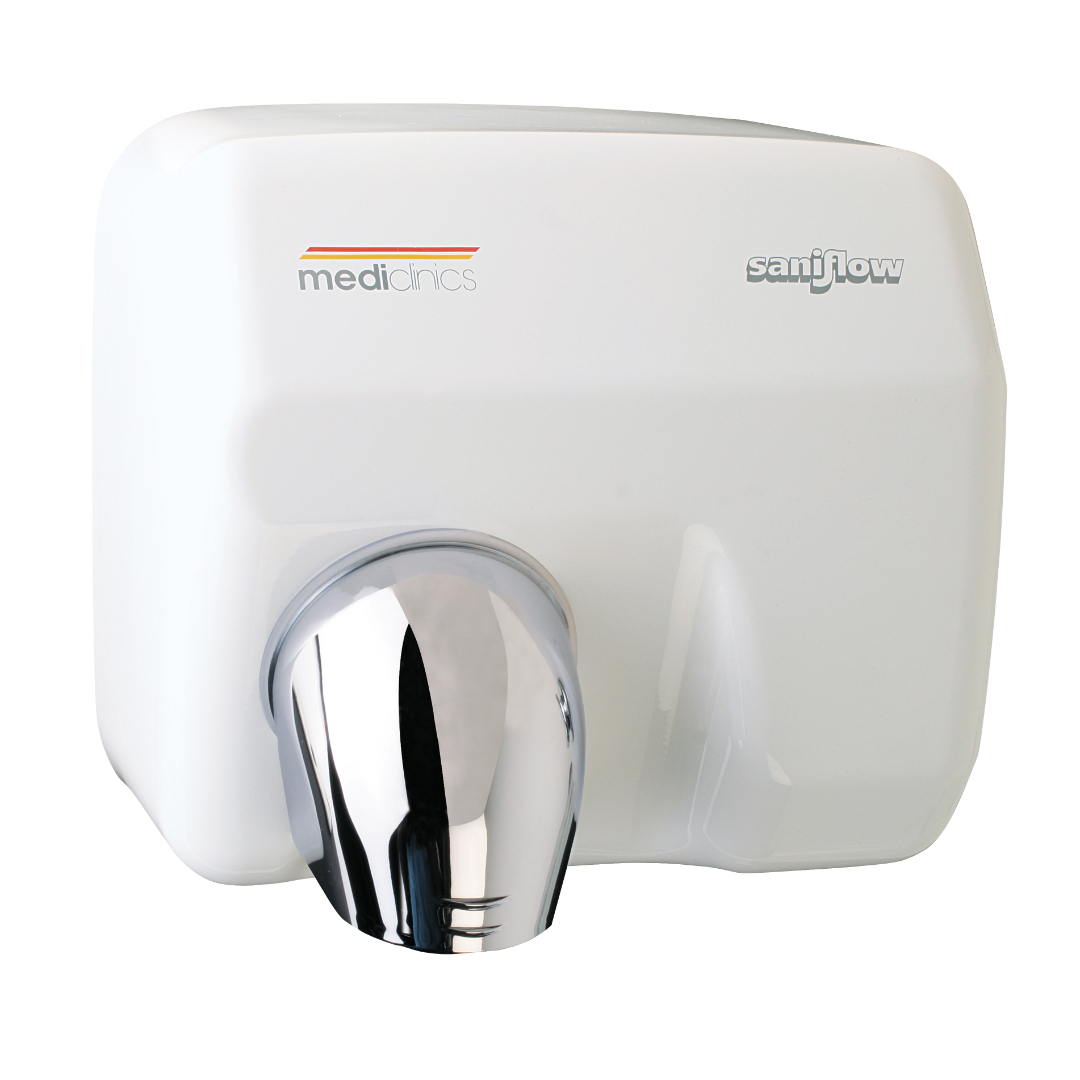 Dat onze ontwerpers weten wat gemak is, bewijst deze handendroger van Mediclinics. Het eenvoudige gebruik en de smetteloze uitstraling maken deze witte gepoedercoate variant een echte bestseller. De droger wordt automatisch geactiveerd wanneer huidcontact plaatsvindt. Door de snelle verplaatsing van de warme lucht is activatie van een halve minuut genoeg voor volledig droge handen.