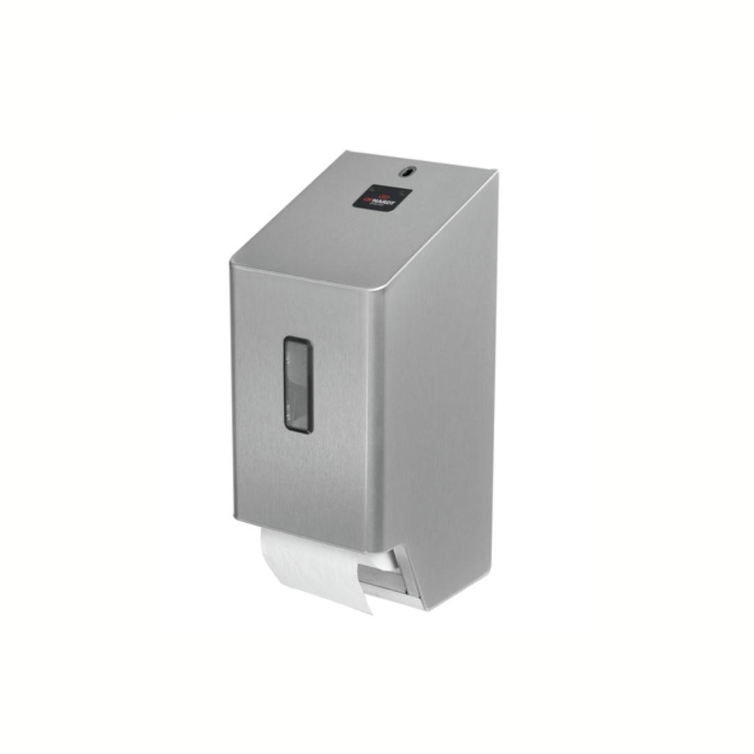 Deze toiletrolhouder is ideaal voor toiletten waar continuïteit belangrijk is. Dankzij het automatische wisselsysteem wordt een lege rol direct vervangen door een reserverol. Toiletpapier kan eenvoudig worden afgescheurd via de opening aan de onderkant.
