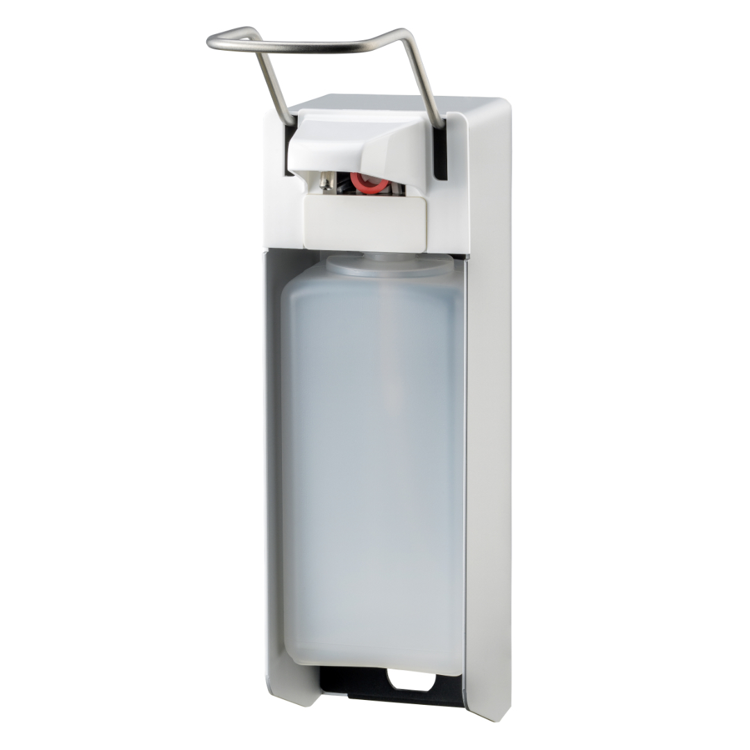 Een handje zeep nodig? Met deze zeep- en desinfectiemiddeldispenser bent u altijd verzekerd van een optimaal hygiƫnische bediening de speciale lange bedieningsbeugel maakt elleboogbediening een fluitje van een cent. De herbruikbare navulfles wordt standaard bij de dispenser geleverd.
