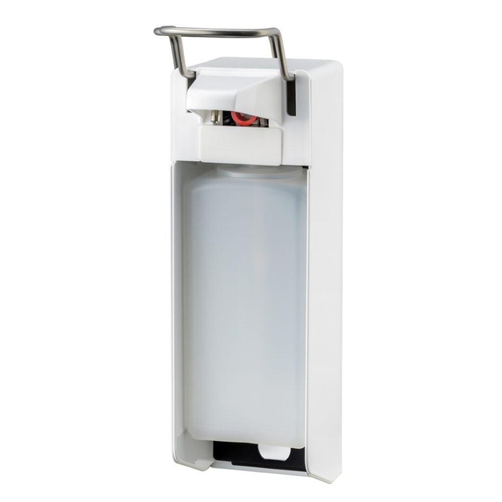 In een klinische omgeving, probeert u handcontact zoveel mogelijk te vermijden. Met de handige elleboogbediening, voldoet de zeep- en desinfectiemiddeldispenser van MediQo-line aan de hoogste hygiƫne-eisen.