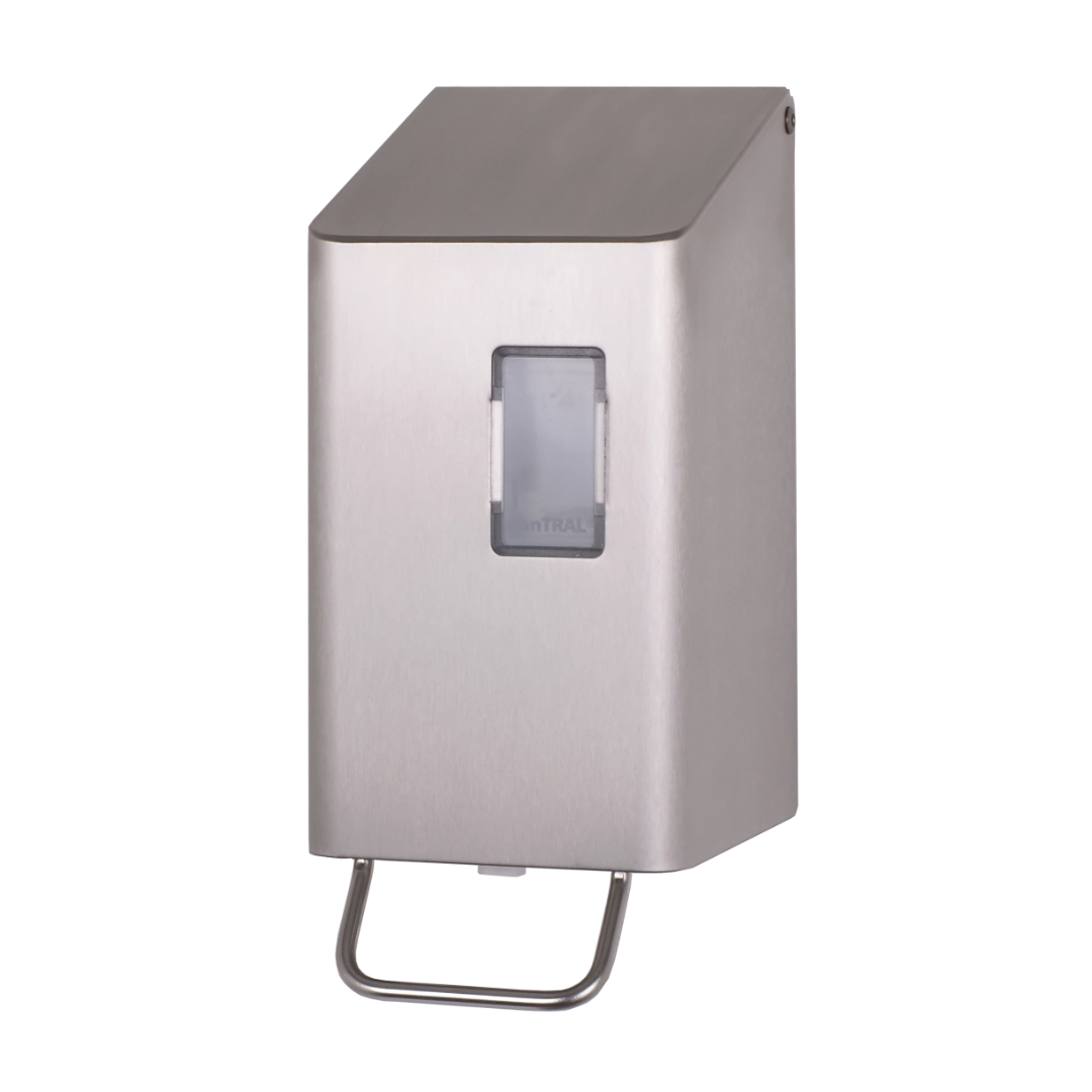 Deze dispenser is geschikt voor vloeibare zeep, alcoholgel, lotion of crème en heeft een inhoud van 250 ml, ideaal voor minder drukbezochte sanitaire ruimtes. De robuuste RVS-behuizing biedt optimale bescherming tegen vandalisme, wat hem uitermate geschikt maakt voor openbare ruimtes. De bediening is eenvoudig: met één druk op de RVS-beugel doseert de dispenser precies de juiste hoeveelheid product.